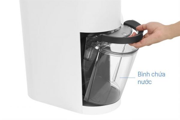 Bình chứa có dung tích lớn 5 lít và được thiết kế trong suốt, có tích hợp đèn cho phép người dùng dễ dàng quan sát mực nước. Bình có nắp đậy kín giúp ngăn nước rò rỉ khi tháo rời.