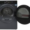 – Máy sấy quần áo có thiết kế cửa trước lồng ngang hiện đại, phù hợp lắp độc lập hoặc kết hợp với máy giặt.