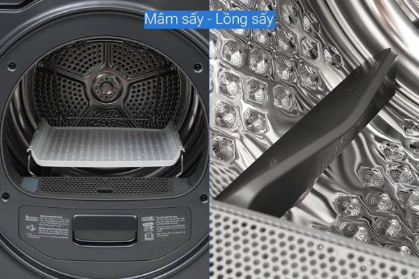 – Lồng sấy bằng thép không gỉ giúp dẫn nhiệt đều, bền bỉ và dễ làm sạch.