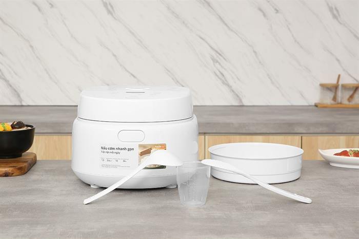 – Nồi cơm điện tử có kiểu dáng tối giản, nhỏ gọn, các đường nét đều được bo tròn, không góc cạnh tạo cảm giác mềm mại, tinh tế. Sản phẩm còn có tông màu trắng trang nhã, phù hợp với mọi không gian bếp.